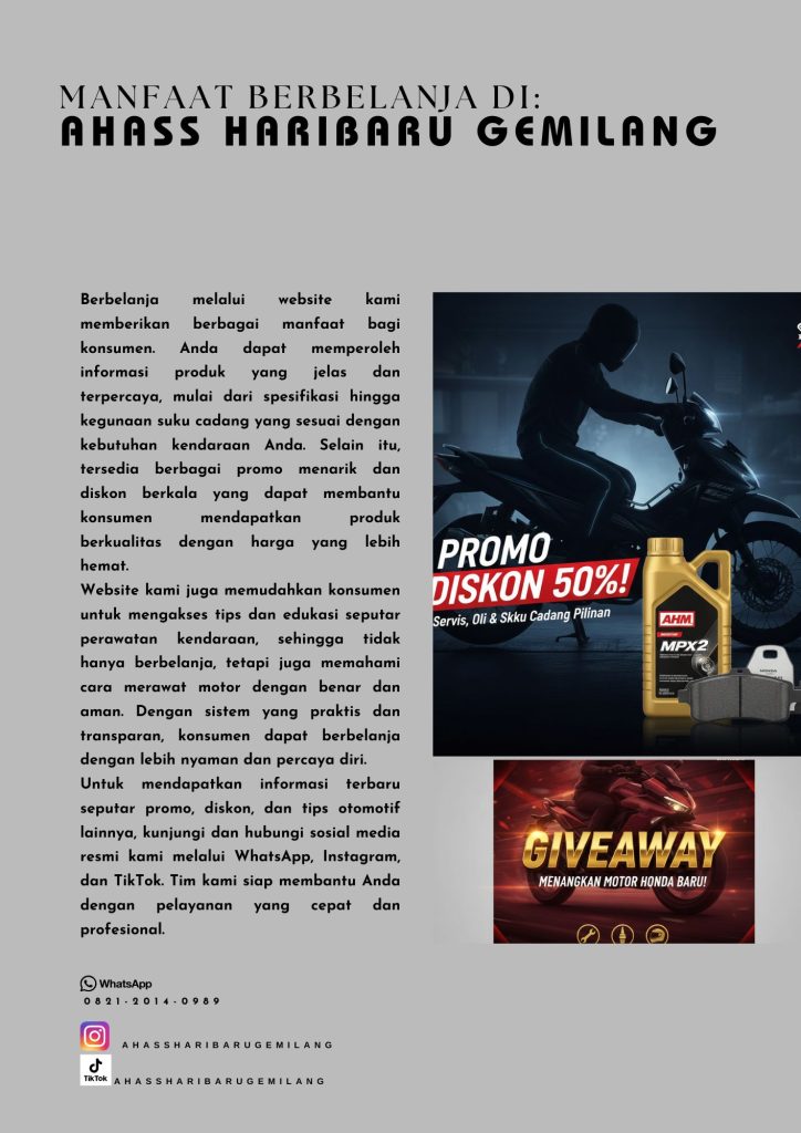 Dapatkan sparepart original Honda dengan harga terbaik hanya di Ahass Haribaru Gemilang